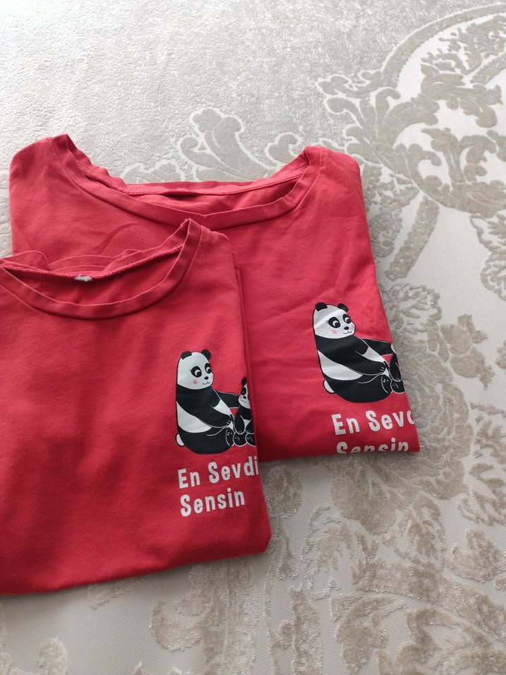 Kırmızı Baskılı Kısa Kollu Kadın Tişört ve çocuk tişört 2 yaş