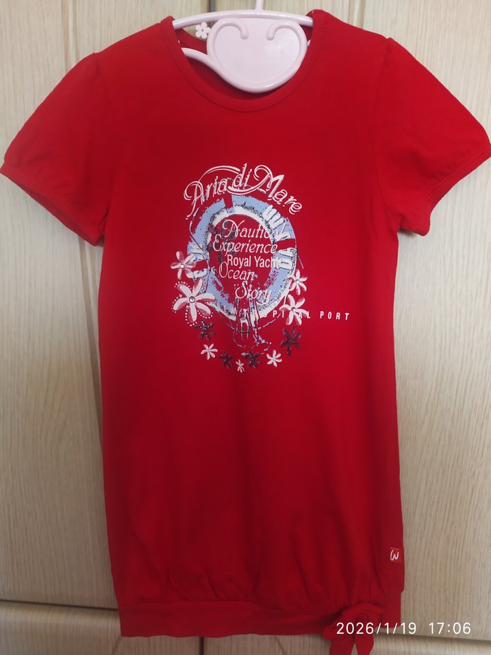 Pamuk kumaştan, kısa kollu, bisiklet yaka ve baskılı desenli kırmızı çocuk tunik,elbise. Rahat ve şık sokak tarzı için uygundur.