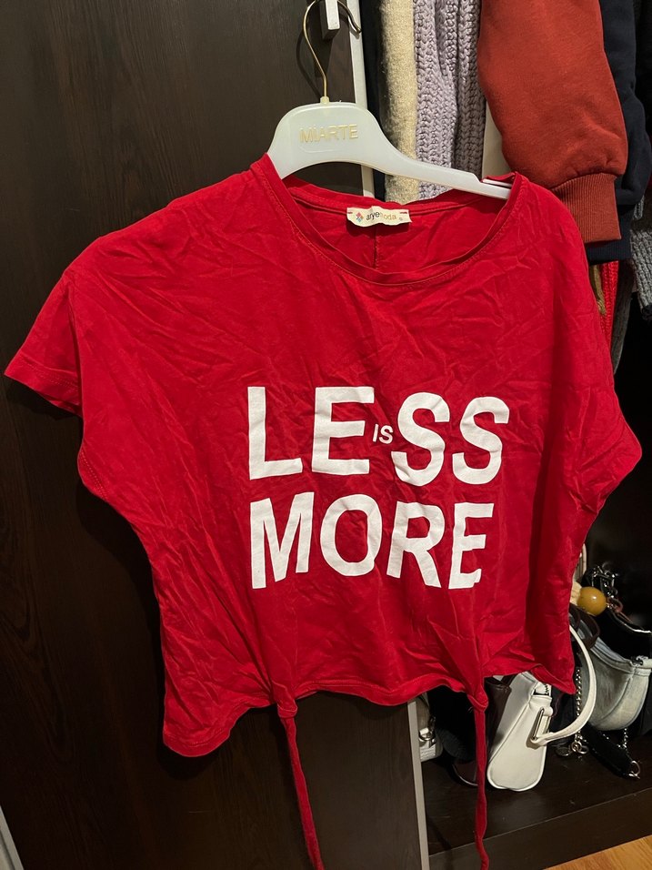 Kırmızı renk, baskılı yazılı, kısa kollu ve salaş kesim tişört, bel detaylıdır. Rahat ve günlük kullanım için uygundur. ✨