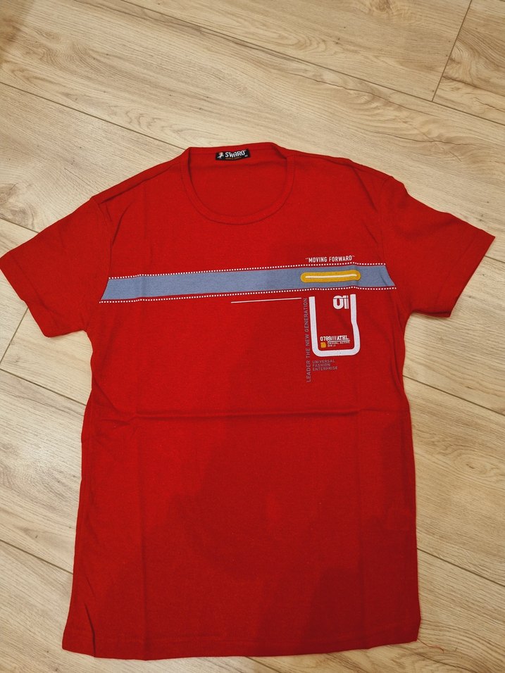 M beden Kırmızı renkli, kısa kollu ve yuvarlak yakalı bayan tişörtü. Baskılı deseni, regular kesimi ve kısa boyu ile günlük rahat kullanıma uygundur.