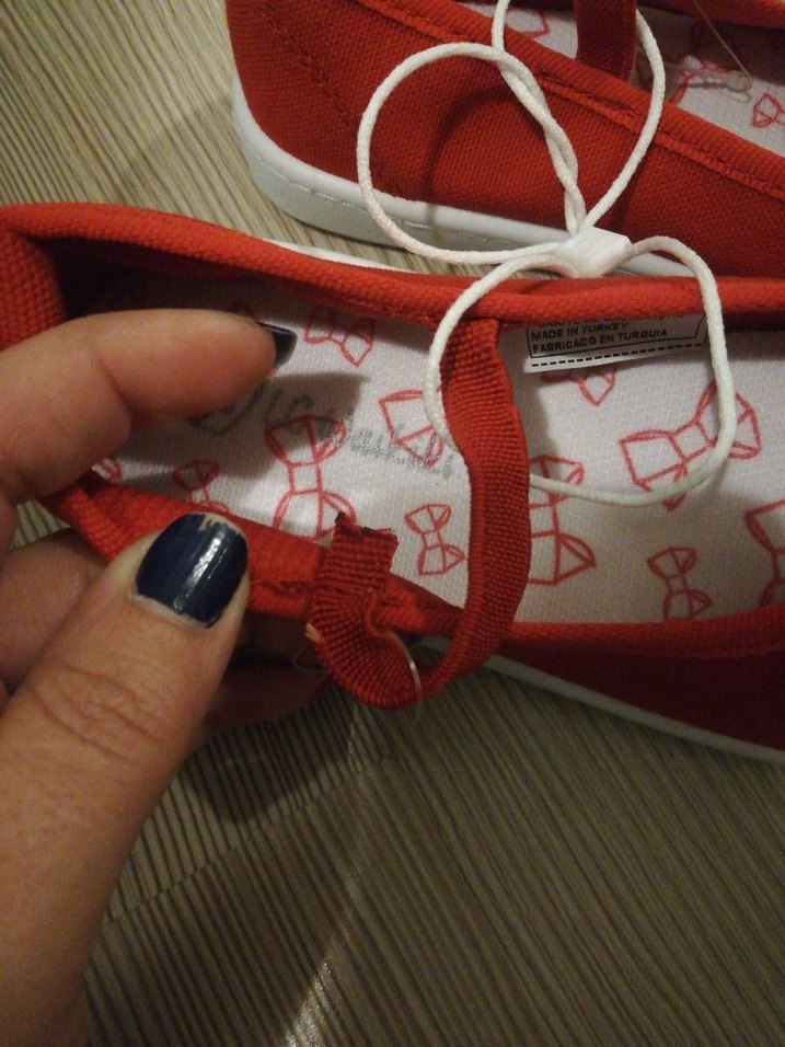 Kızlar için kırmızı baskılı babet ayakkabı, velcro kapamalı. Parlak görünümlü ve kauçuk tabanlıdır. Sıfırdır hedıye gelmişti hiç kullanılmadı resımde gördüğünüz gibi