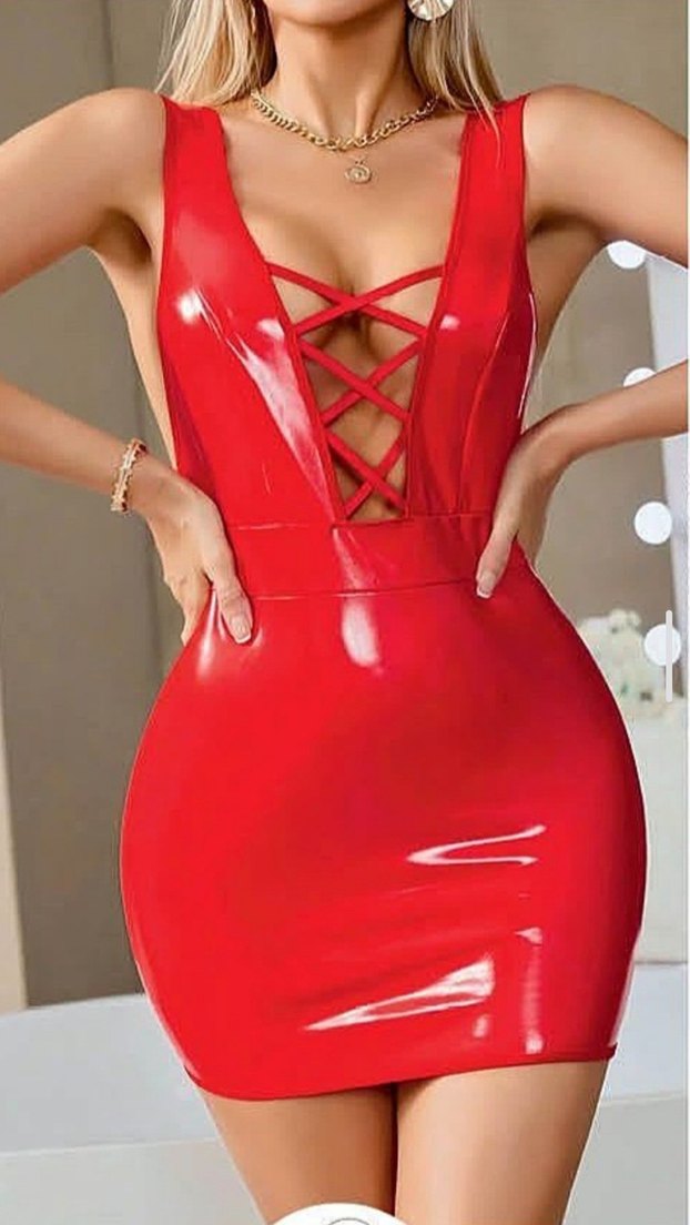 Kırmızı Baskılı Midi İç Giyim derili gecelik bedenler mevcut