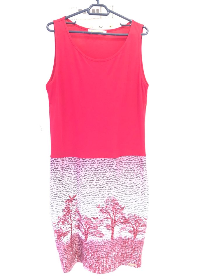 Kırmızı Baskılı Midi Kolsuz Elbise