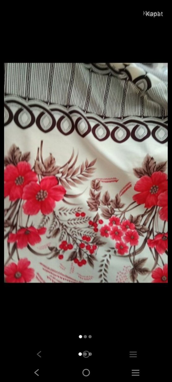 Koyu kırmızı çiçek desenli ve kahverengi yaprak detaylı yumuşak kumaştan perde takımı.