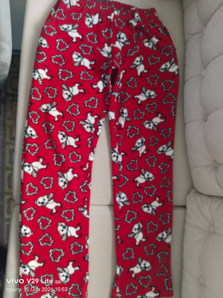 Kırmızı, köpek ve kalp desenli, yumuşak ve sıcak kumaştan yapılmış, elastik polar taytı.