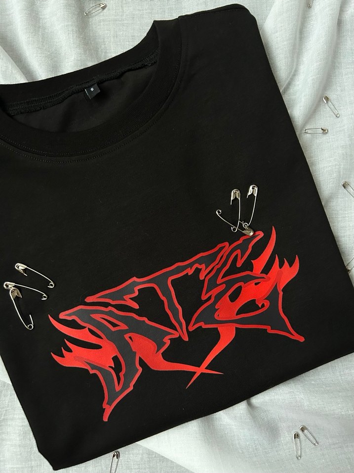 Kırmızı Baskılı Rock Pun Tişört