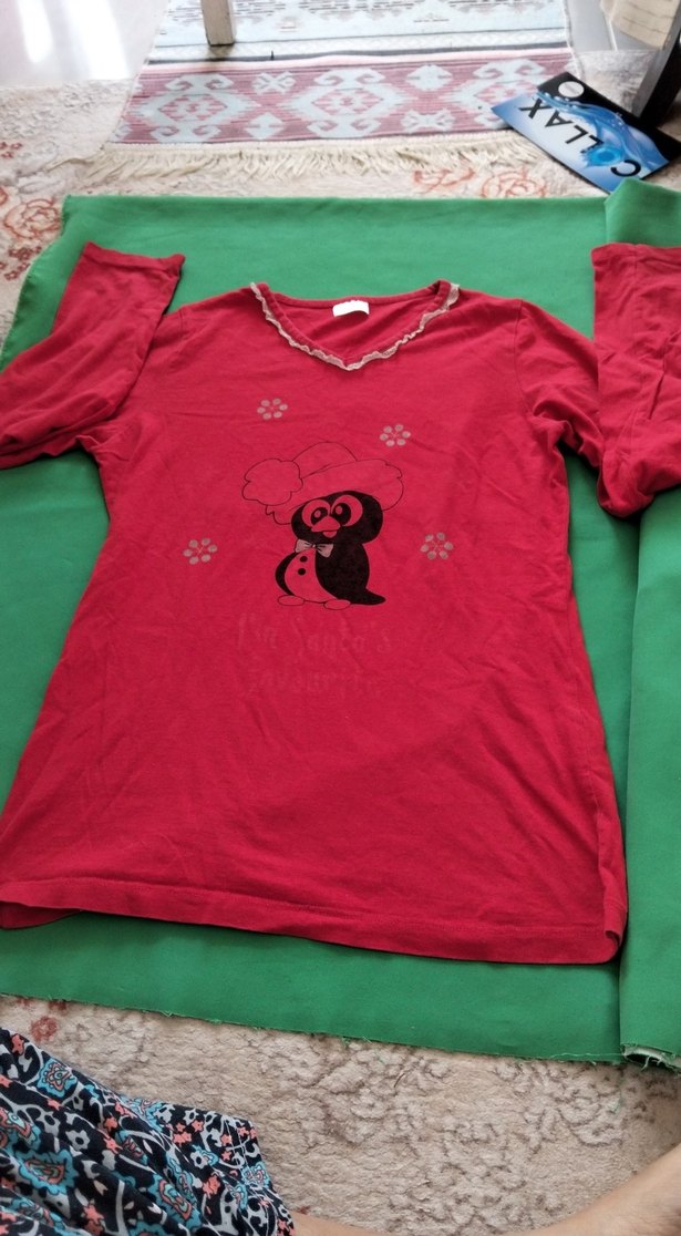 Kırmızı, yuvarlak yaka, uzun kollu sweatshirtü, yumuşak ve sıcak kumaş üzerine renkli penguen baskısına sahiptir. Bol kesim ve midi boydadır.
