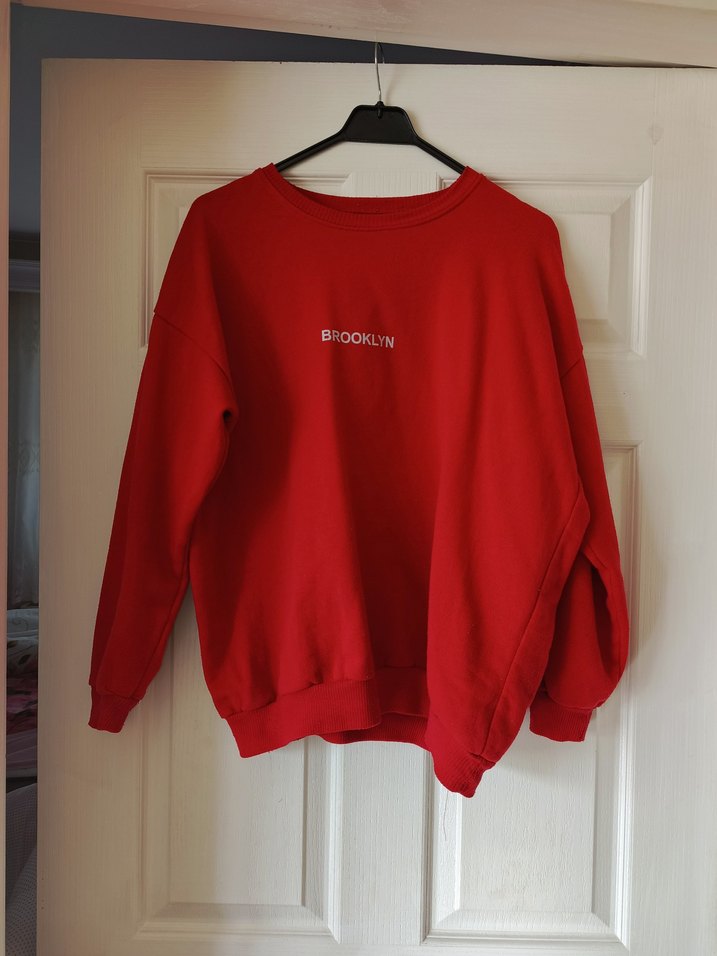 Kırmızı Baskılı Sweatshirt
