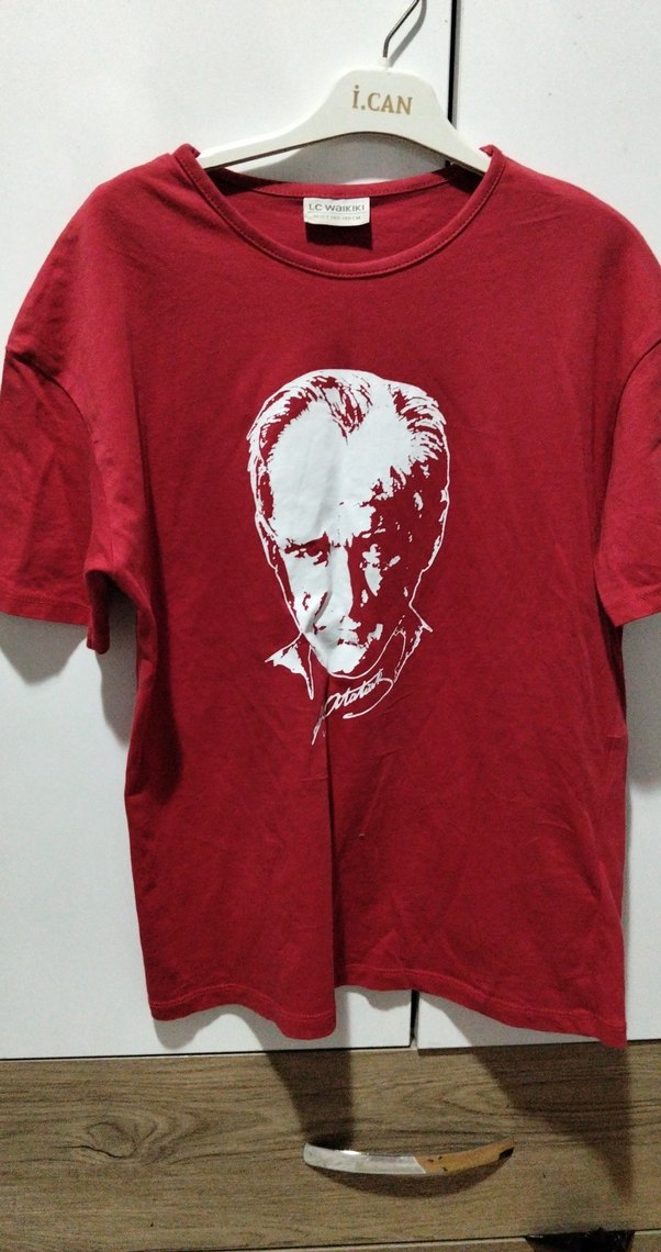 Kırmızı Baskılı Tişört Atatürk baskılı