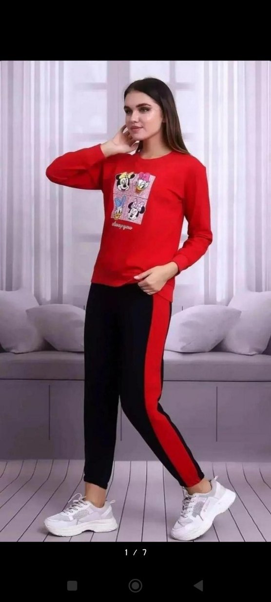 Kırmızı Baskılı Uzun Kollu Kadın eşofman Takımı