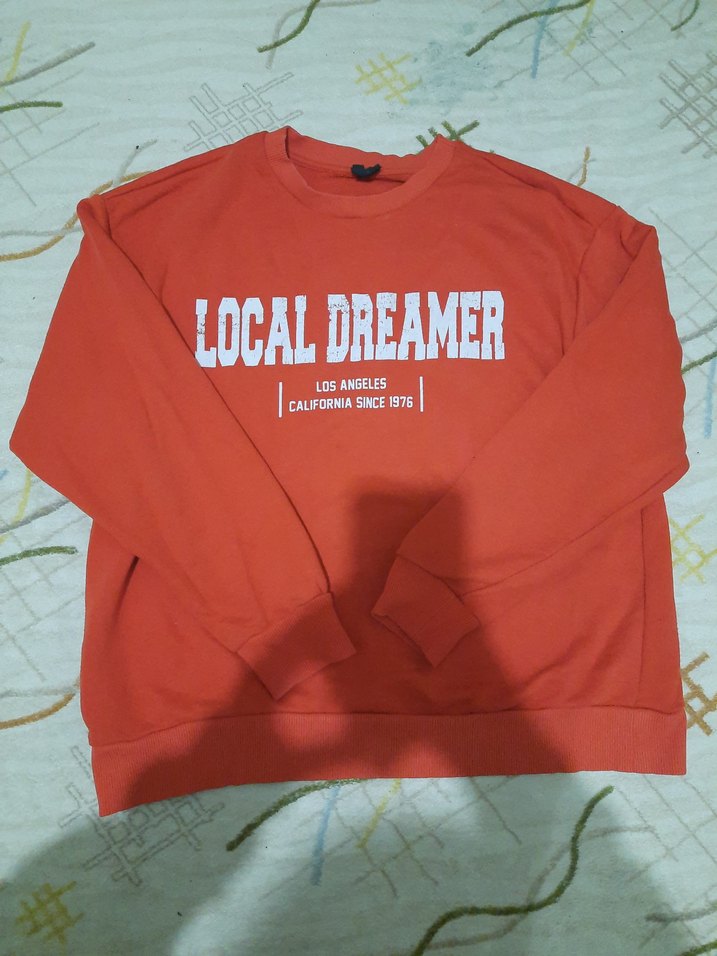 Pamuk kumaştan yapılmış, uzun kollu ve yuvarlak yakalı kırmızı sweatshirt. Üzerinde "LOCAL DREAMER, LOS ANGELES" baskısı bulunur. Renkli ve rahat sokak stili için uygundur.