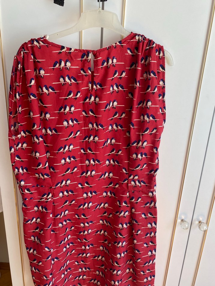 Kolsuz, drapeli ve bol kesim V yaka ve parlak kırmızı baskılı kumaştan, midi boyda, günlük kullanıma uygun. ️Yaz için tiril tiril çok ince kumaştır.Yan cepli arka fermuarlı boy 94 iki kol arası 67cm.Hindistan üretimi