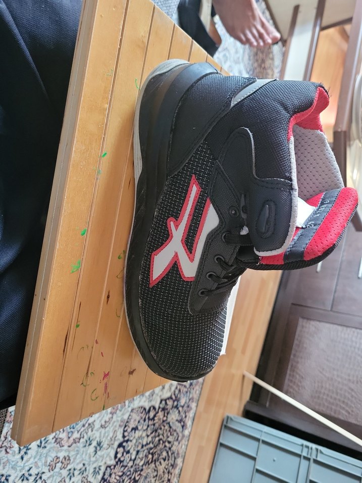 Kırmızı baskılı, velcro bantlı, kauçuk tabanlı basketbol ayakkabısı, sokak stili ve spor şıklığı için uygundur.
