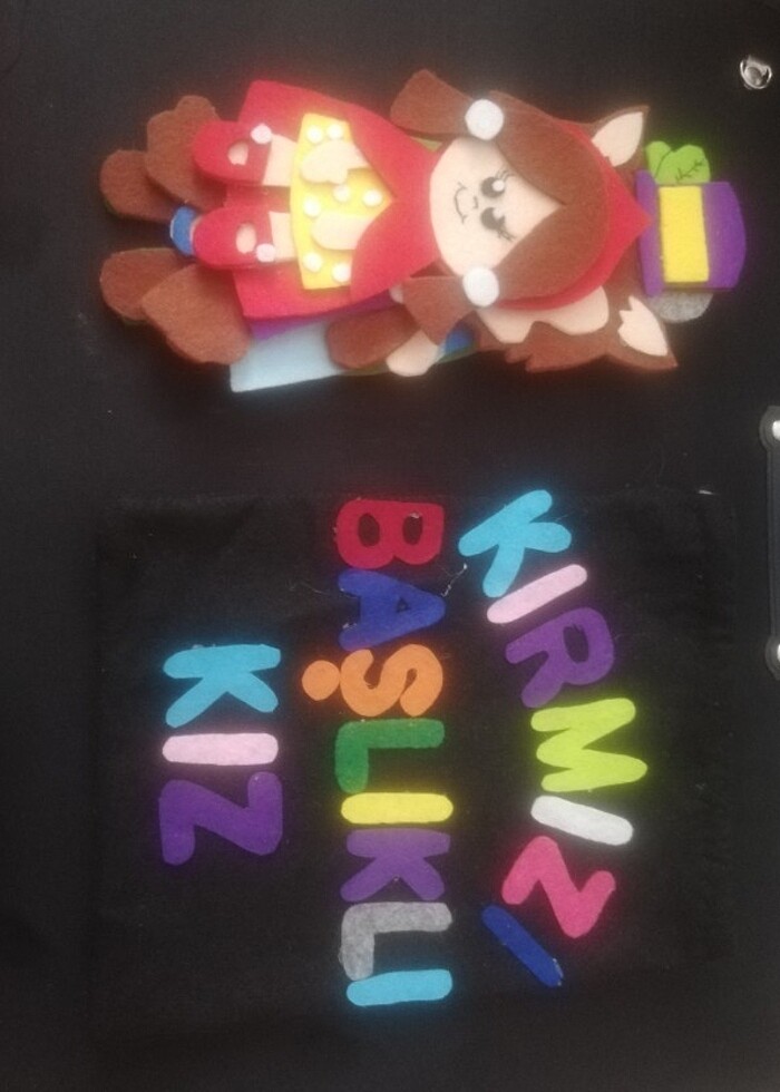Keçeden yapılmıştır. Kırmızı başlıklı kız hikayesini canlandırabilirsiniz. Arkasında magnetler var. Akıllı tahta üzerinde hikaye anlatabilirsiniz.