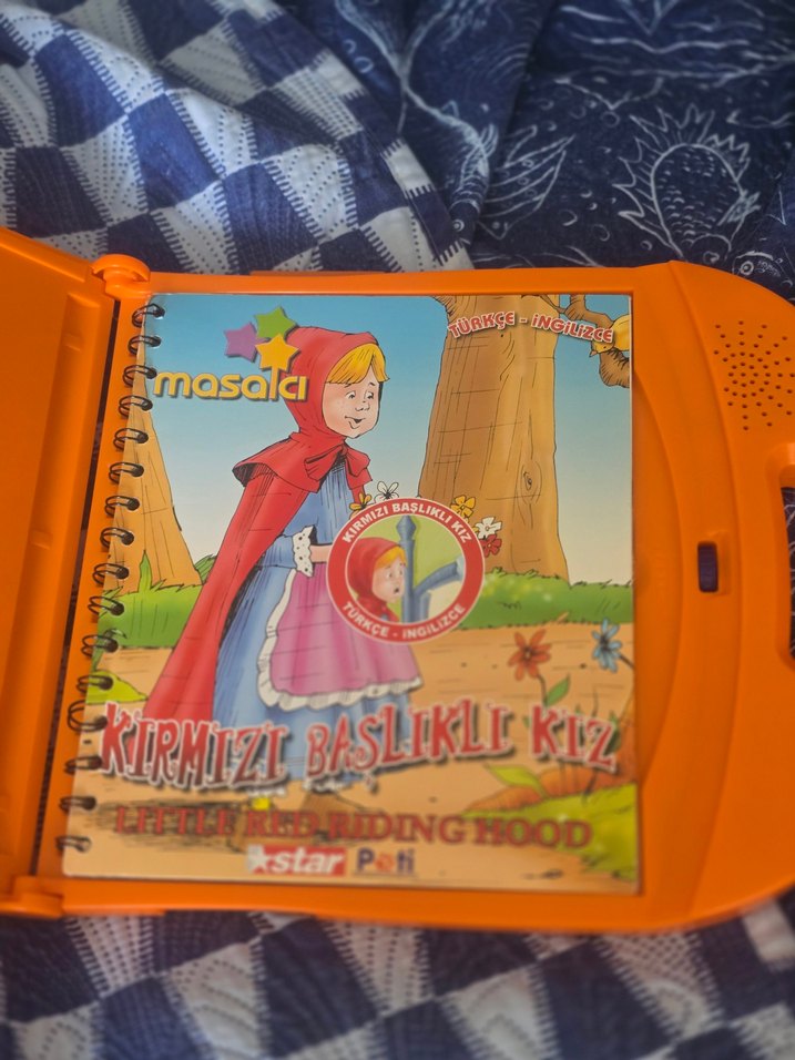 Kırmızı Başlıklı Kız masal kitabı, Türkçe ve İngilizce metinlerle birlikte sesli özelliklere sahiptir.