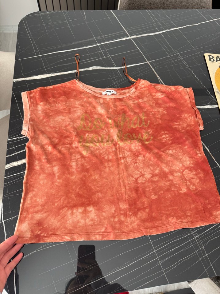 Kırmızı Batik Desenli Kadın Salaş Tişört - Görsel 6