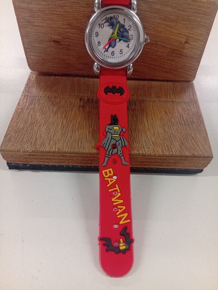 Kırmızı baskılı Batman desenli kayışa sahip, tokalı kapamalı renkli erkek çocuk kol saati. Kayış yumuşak, polar dokulu. ⌚ Batman silikon kordon çocuk saati... Coocukların çok sevdiği karakterlerin başında gelen Batman kol saati . Silikon özelliği çocukların kollarına rahatça sarmasina imkan tanıyor. kendi başlarına rahatlıkla kullanabilirler.
