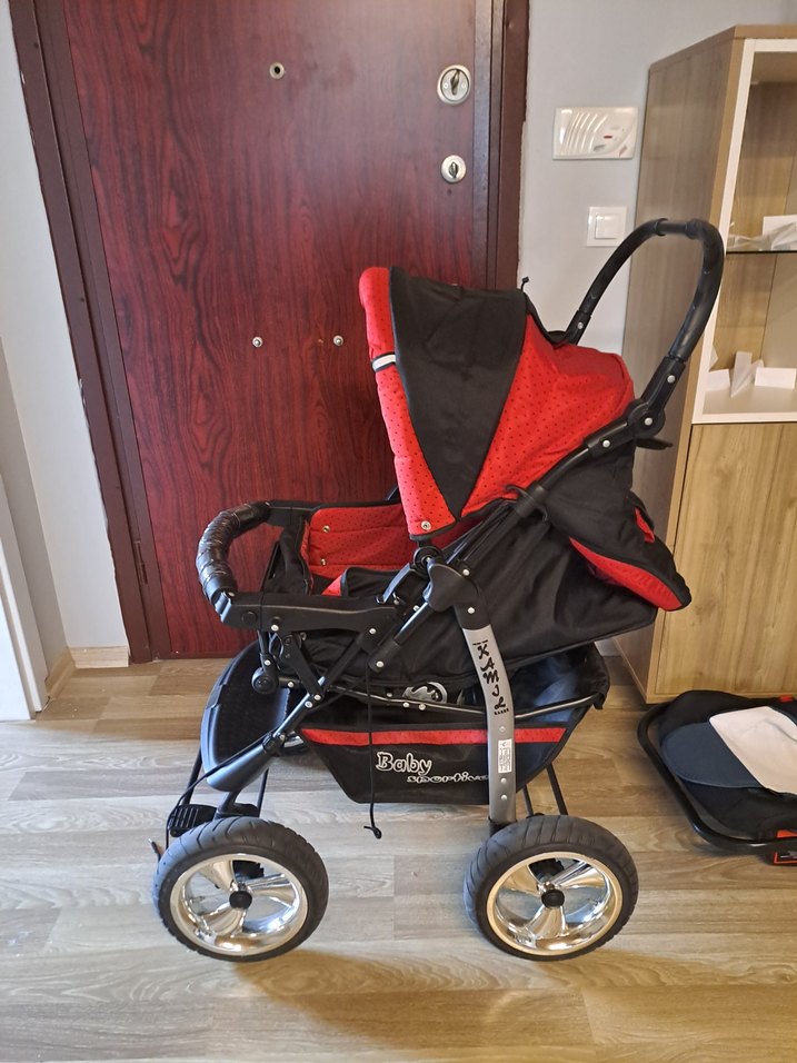 Koyu kırmızı renkli bebek arabası, sağlam iskelet, rahat oturma alanı ve büyük tekerleklerle konforlu sürüş sağlar. Altında saklama sepeti bulunur kendi aparatları dahildir. (Almanyadan gelmiş lakin hiç kullanılmamıştır)