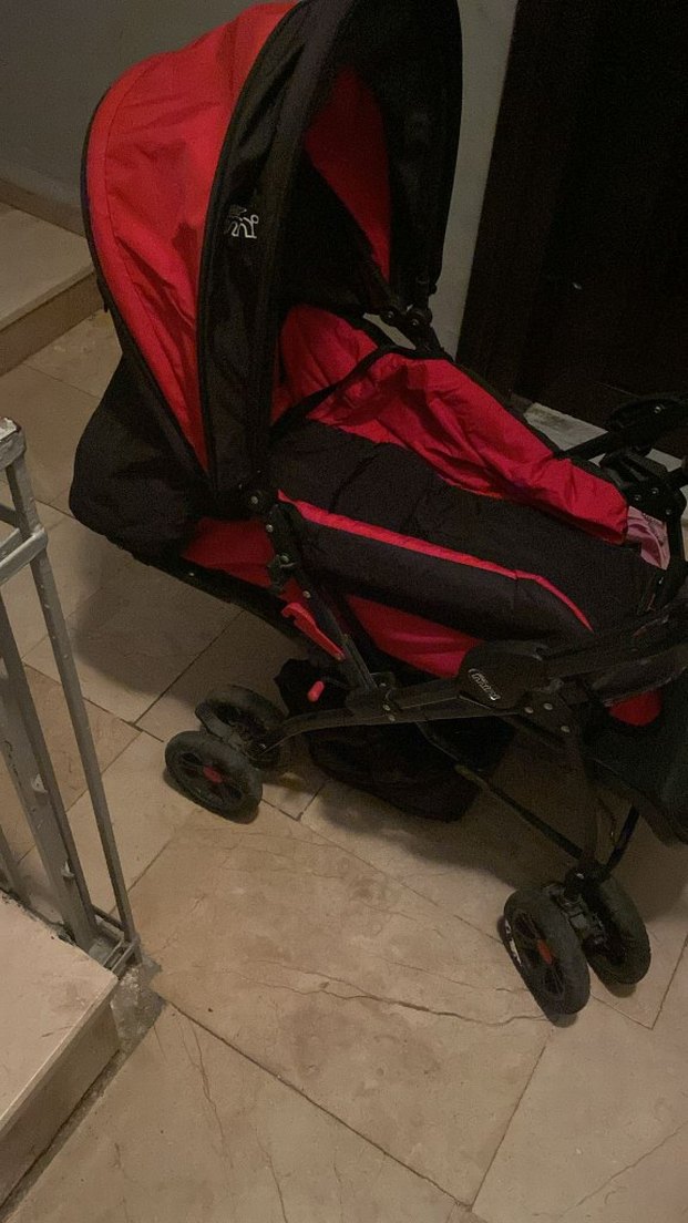Kırmızı renkte, katlanabilir ve hafif yapısıyla kolay taşınabilen bebek arabasıdır. Konforlu oturma alanı ve sağlam siyah çerçeveye sahiptir.