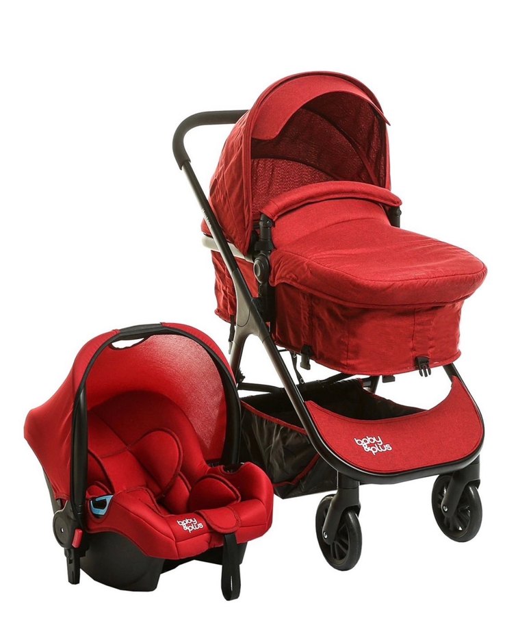 Canopy ve alt sepeti olan canlı kırmızı bebek arabası, uyumlu oto koltuğu ile birlikte gelir. Konfor ve pratiklik sağlar. E bebek markalı ve çok az kullanılmıştır