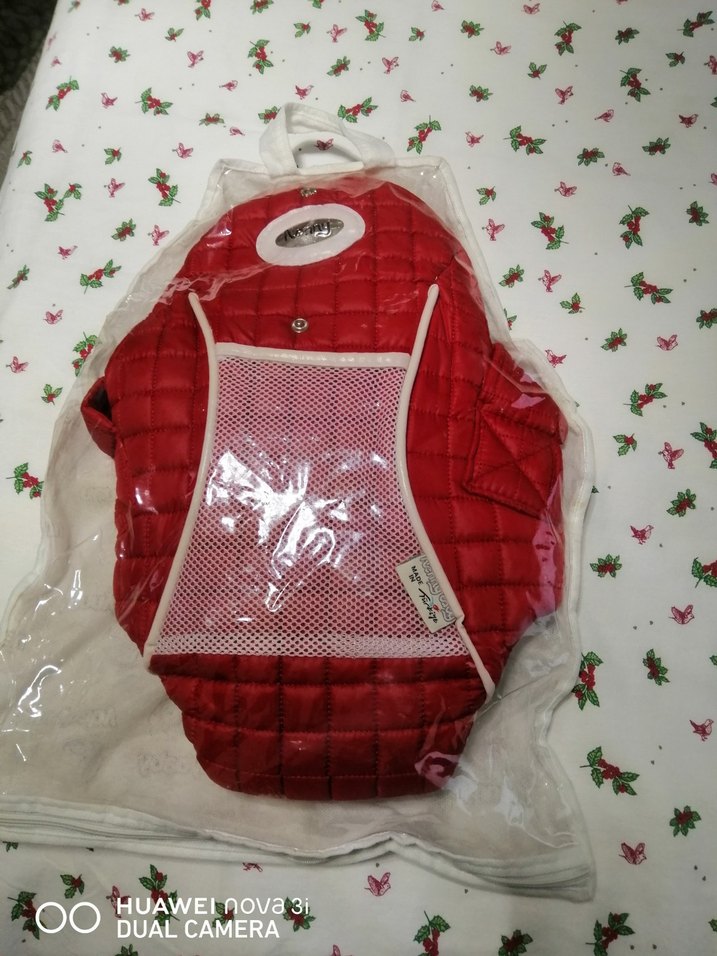 Renkli, nefes alabilen file ön cepli yumuşak, kapitone kumaştan kırmızı bebek taşıyıcı. sayılı kullanıldı