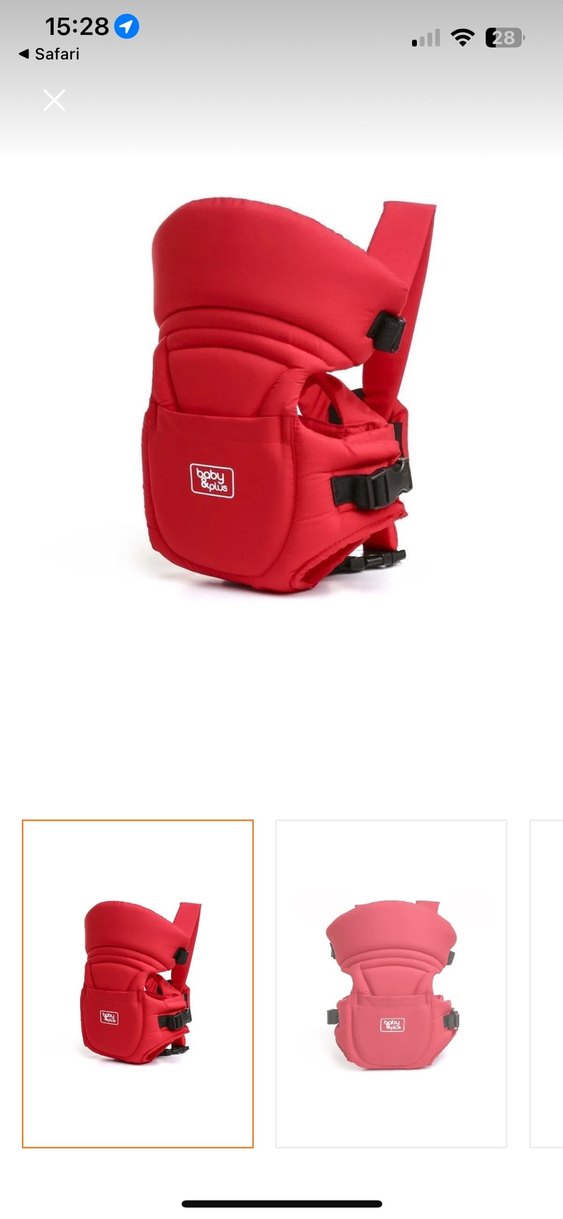 Kırmızı bebek taşıyıcı, ayarlanabilir kayışlar ve konforlu yastıklamalara sahiptir. Bebeğinizi güvenle tutar ve ellerinizi serbest bırakır.