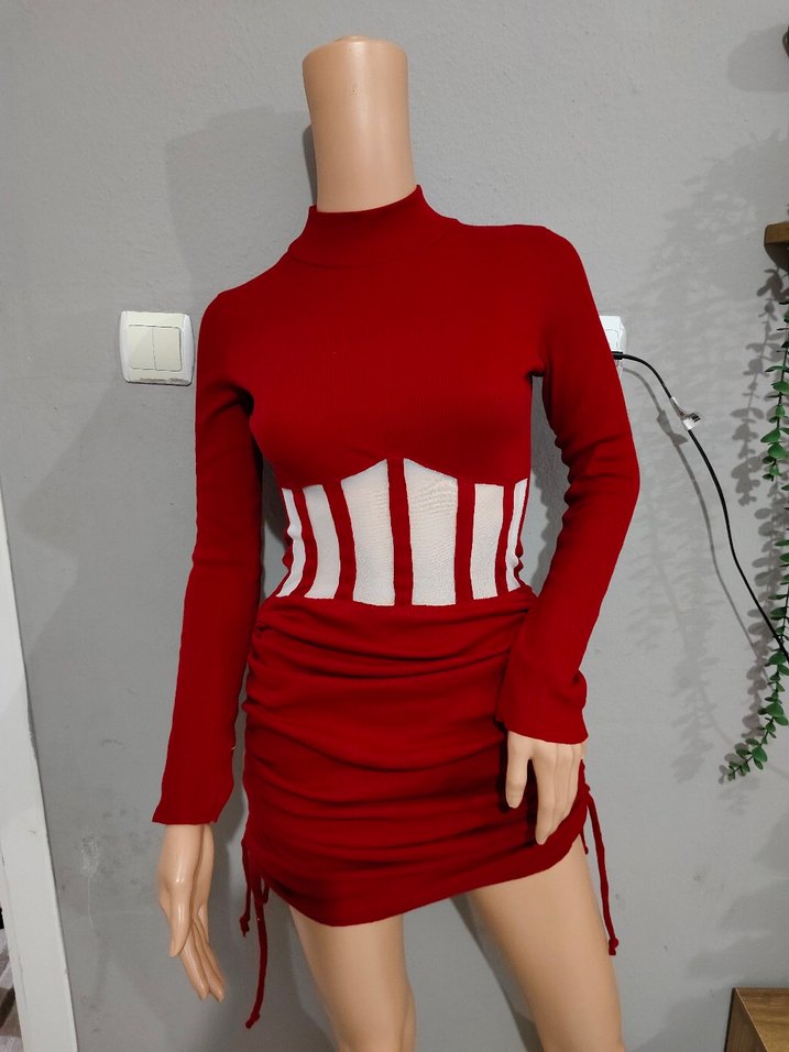 Kırmızı beli korse detaylı elbise