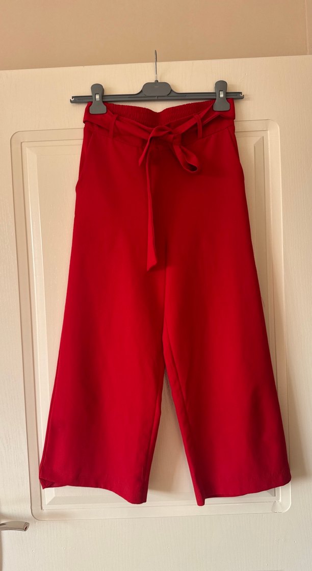 Kırmızı Beli Kuşaklı Kadın Midi Pantolon