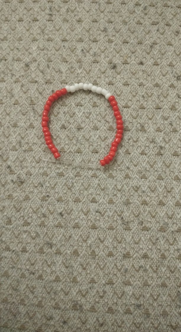 Kadın bilekliği, kırmızı ve beyaz boncuklardan oluşur. Minimalist ve sade tasarımıyla günlük kullanıma uygundur. Desensiz, hafif karşı kültür havası taşır.
