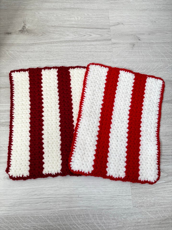 Yumuşak dokulu, kırmızı ve beyaz çizgili renkli banyo süngerleri, nazik temizlik için uygundur.