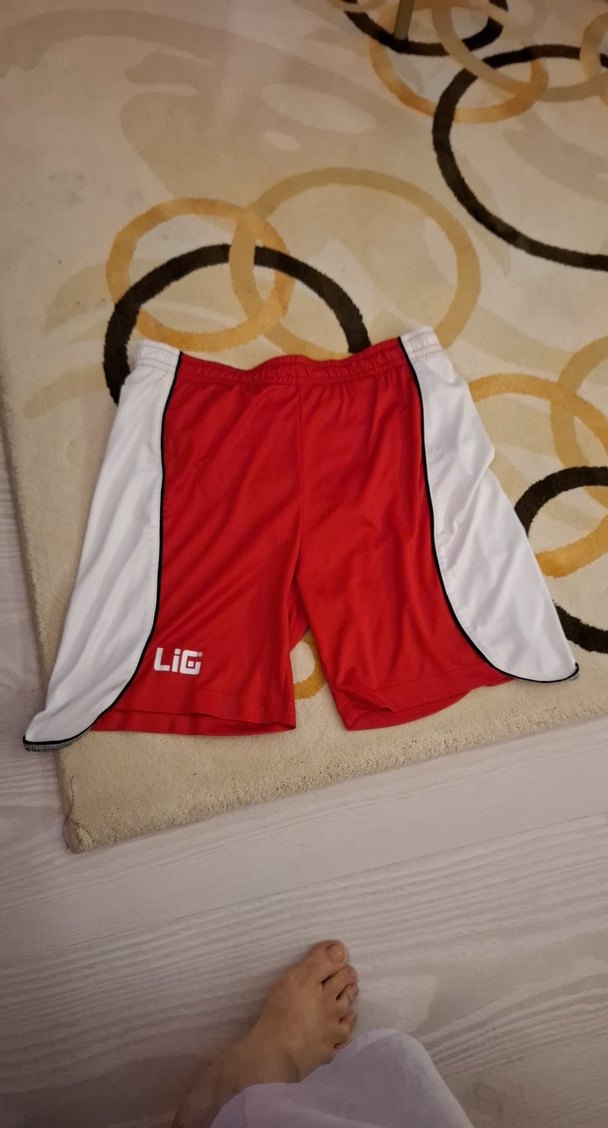 Sentetik kumaştan kırmızı beyaz, bol kesim erkek spor şortu. 'LiG' logosu bulunur. Sokak stili ve spor giyime uygundur.