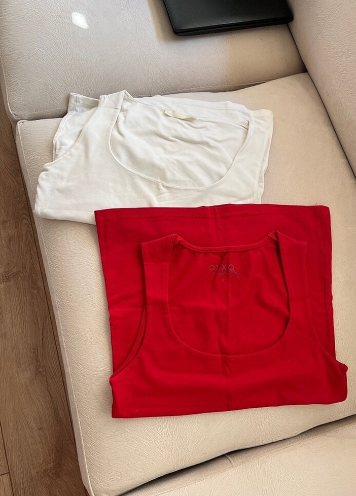 Pamuklu, kolsuz, kırmızı tişört normal boy ve dar kesimlidir. Minimalist tarzda, günlük kullanıma uygundur.