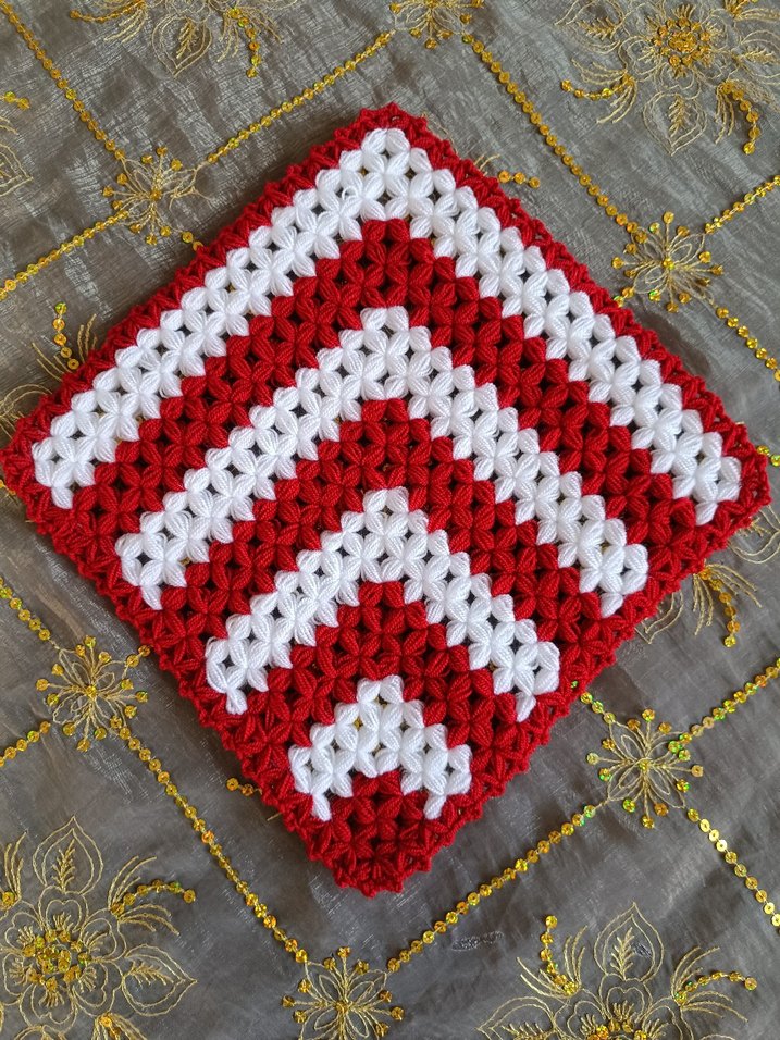Renkli kırmızı ve beyaz örgü desene sahip, yumuşak dokulu banyo lifi