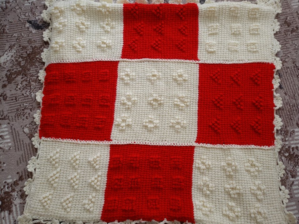 Kırmızı Beyaz Örgü Bebek Battaniyesi