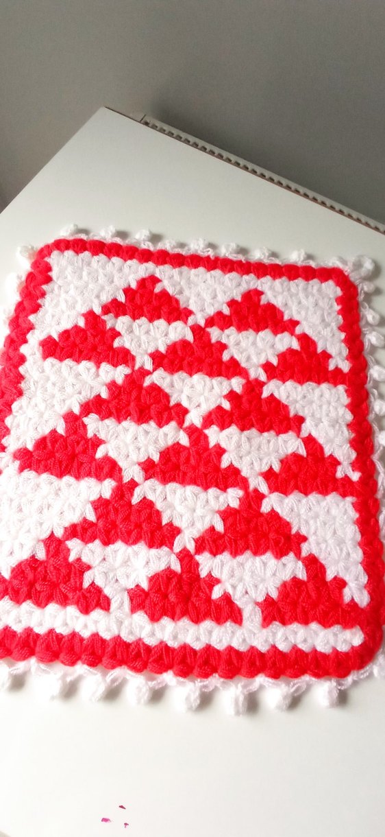 Kırmızı ve beyaz renklerde desenli, dokulu yapıya sahip, yumuşak ve renkli banyo lifi ceyizlik