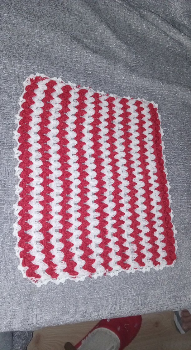 Kırmızı ve beyaz şeritli, dokulu desenli banyo lifi. Yumuşak ve dayanıklı yapısıyla kullanıma uygundur. el örgüsü.#çeyiz#lif#kırmızı#beyaz