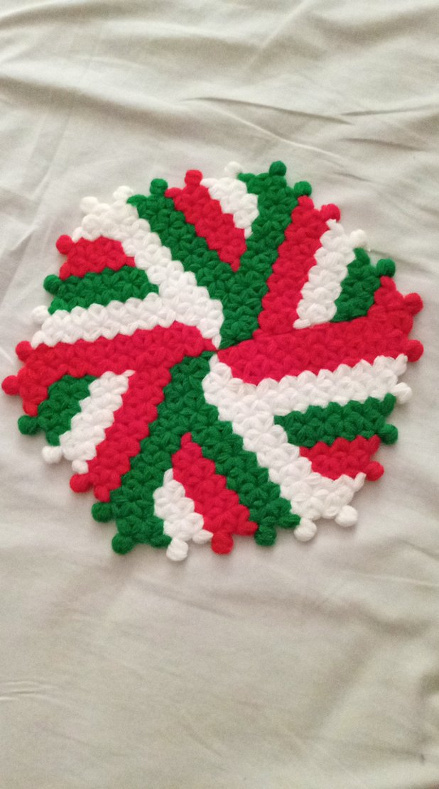 Kırmızı, beyaz ve yeşil renklerde, dokulu desene sahip el örgüsü yuvarlak peçetelik. Masanıza geleneksel bir dokunuş katar.