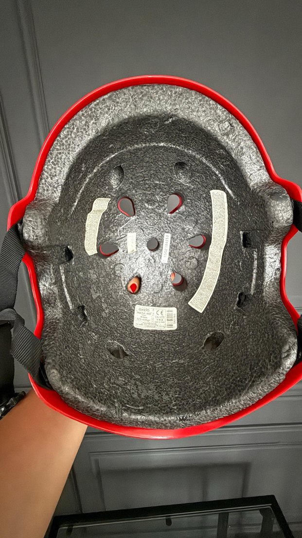Kırmızı renkli plastik kabuklu biker motosiklet kaskı, iç kısmı gri ve konforlu. Velcro bantlı ve grunge punk tarzına uygun. ️