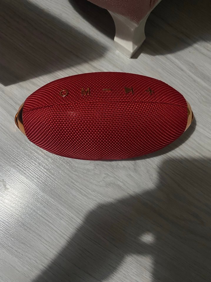 Kırmızı renkli. Bluetooth hoparlör. Üstte kontrol düğmeleri bulunur. Taşınabilir ve şık tasarım. Tertemiz. Yanında gold detaylar ile çok hoş duracak evinize renk katabilirsiniz. Ses kaliteside gayet iyi. Kabloları ile yollayacağım. Kullanmadım ama kutusunu bulamadım. Zaten temiz görüyorsunuz ben alıp kenara koyarım genelde alışveriş bağımlılık olduğu için bu yüzden artık ev değiştirken sıkıntı oluyor. ürünlerim temiz emin olabilirsiniz.