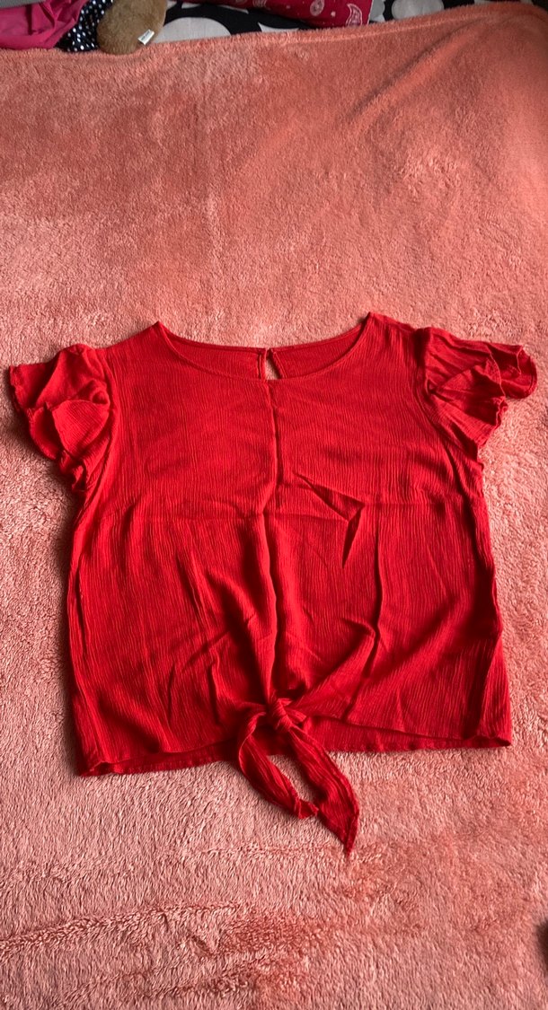 Keten kumaştan üretilmiş, kısa kollu ve fırfır detaylı kırmızı bluz. Salaş kesimi ve normal midi boyu ile günlük sokak stili için uygundur. Etek ucunda bağlama detayı bulunur. Omuzdan boy:52, iki koltuk arası:47 omuz genişliği:40 Lc den almıştım ama etiketi rahatsız ettiği için çıkardım