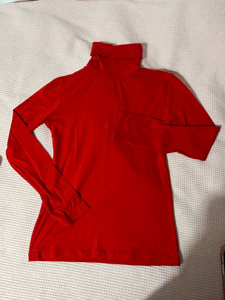 Kırmızı parlak renkte, boğazlı ve uzun kollu kadın body normal boyda, sade tasarımlı, dış mekan sokak stili için uygun.