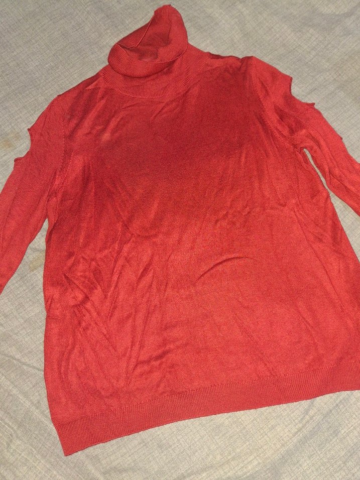 Parlak kırmızı renkte, boğazlı ve uzun kollu kadın kazak. Rahat kesim ve normal boyda, yumuşak örme kumaştan, rahat bir his sunar. Günlük sokak stili için uygundur.