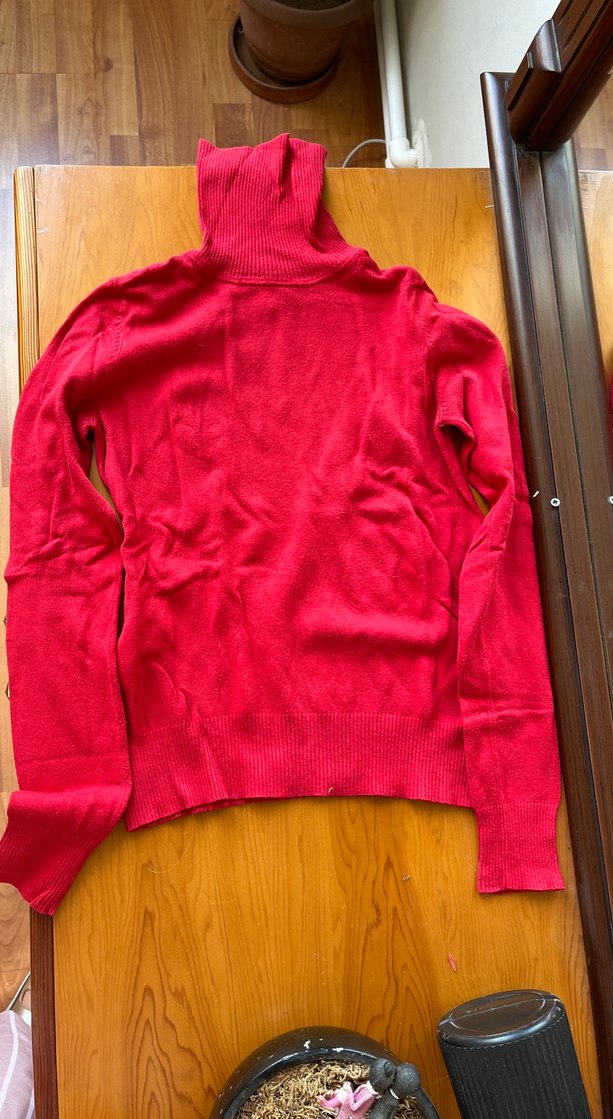 Kırmızı, boğazlı ve uzun kollu, vücuda oturan kadın kazak. Orta uzunlukta, yumuşak ve sıcak kumaştan, sade ve şık, günlük kullanıma uygun.