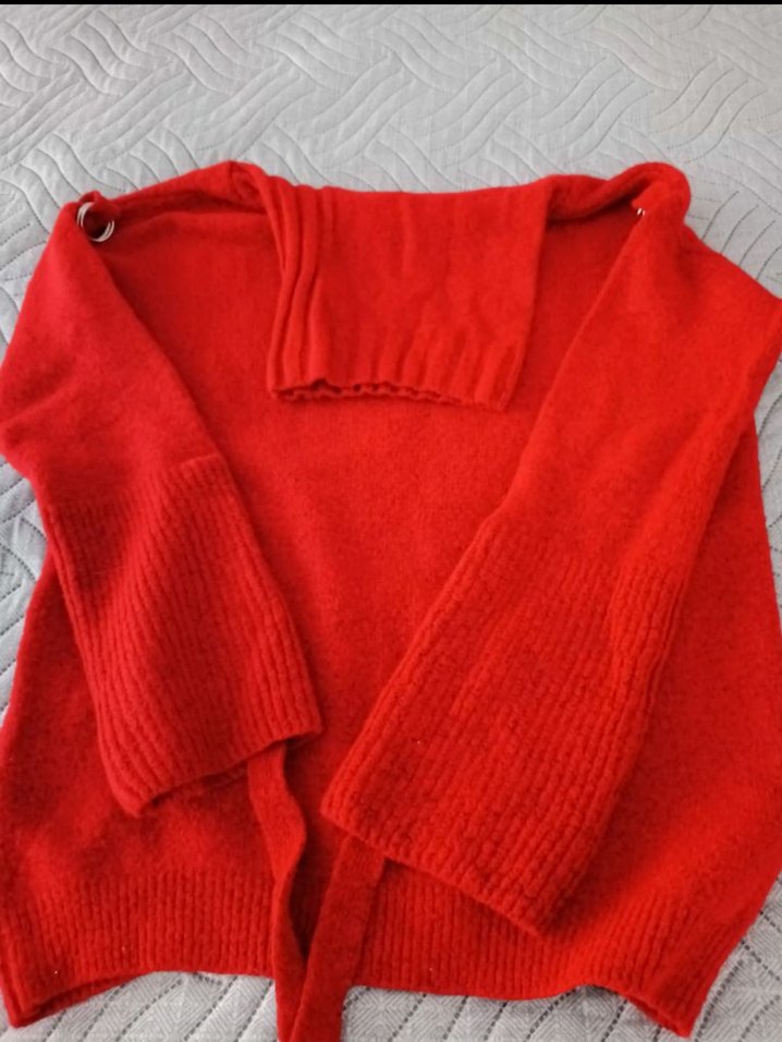 Kırmızı renkli, boğazlı ve uzun kollu kadın kazak. Örgü kumaştan, rahat kesim ve midi boyda, günlük kullanıma uygun sade bir tasarım.Kusursuz