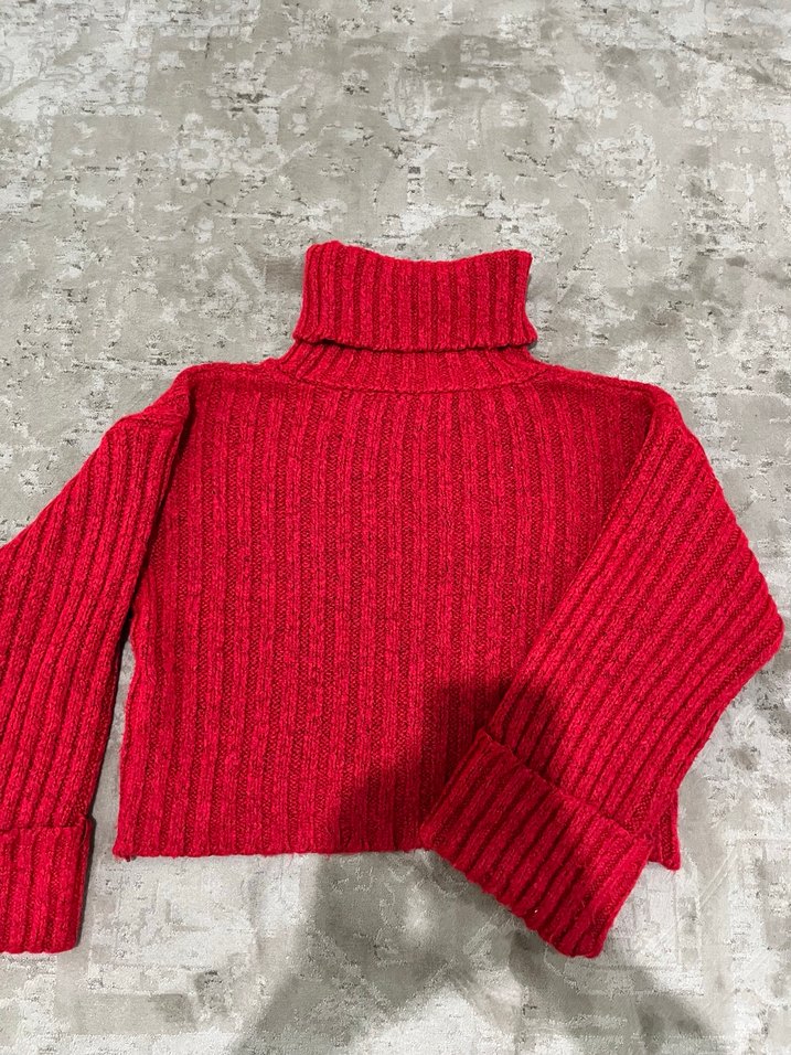 Kırmızı Boğazlı Triko Kadın Kazak