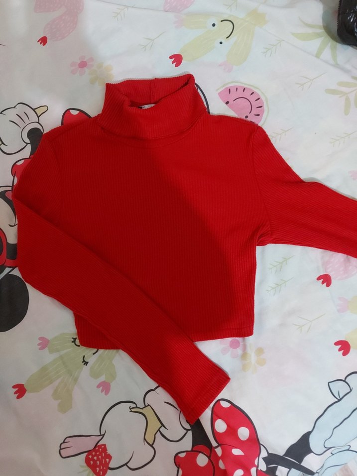 Kırmızı renkli, uzun kollu ve boğazlı, yumuşak ve sıcak dokulu triko kumaştan, dar kesim şık bir kazak.