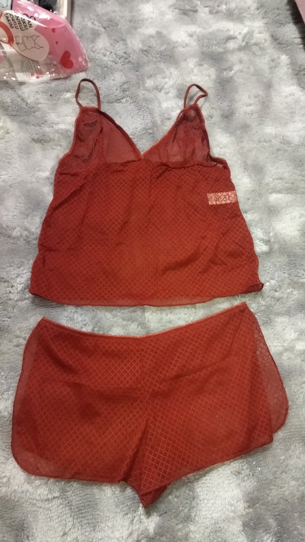 Kırmızı, bohem tarzda, kısa ve mini uzunlukta, yumuşak dokulu kadın iç giyim takımı. Rahat ve şık bir kullanım sunar. askılı atlet ve şort dantelli takım yenidir hiç giyilmedi giyerim diye aldım ceyizime nakite ihtiyacım olduğu için koyuyorum s m uyumlu