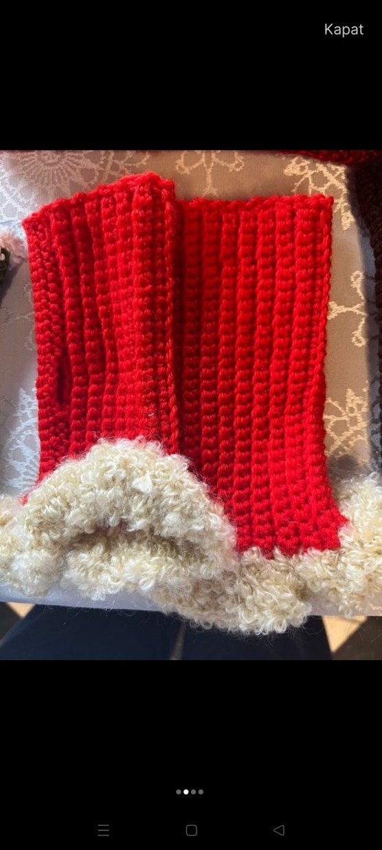 Kırmızı örgü kadın eldivenleri, yumuşak kıvırcık kenarlarıyla sıcak ve rahat bir bohem tarz sunar. Canlı ve retro bir görünüm için uygundur.