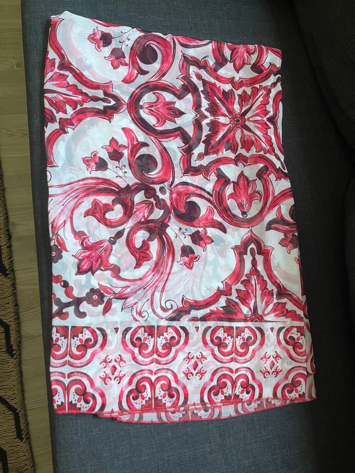 Kırmızı renkli, dokuma kumaştan yapılmış, bohem desenlere sahip kadın şal ya da Pareo dur geniş ölçüye sahip yeni kullanılmadı marka : dolce gabbana