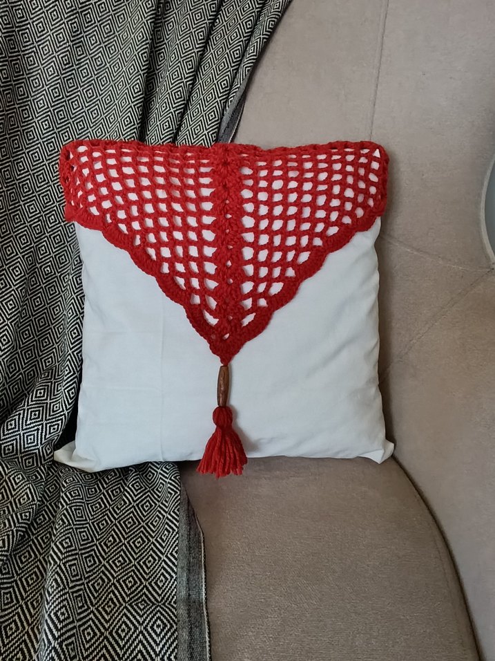 Kiremit rengi bohem tarzda dekoratif kırlent kılıfı püskül ve boncuk detayınile dikkat çekiyor. Mekâna canlılık katıyor. 40x40cm 45x45cm